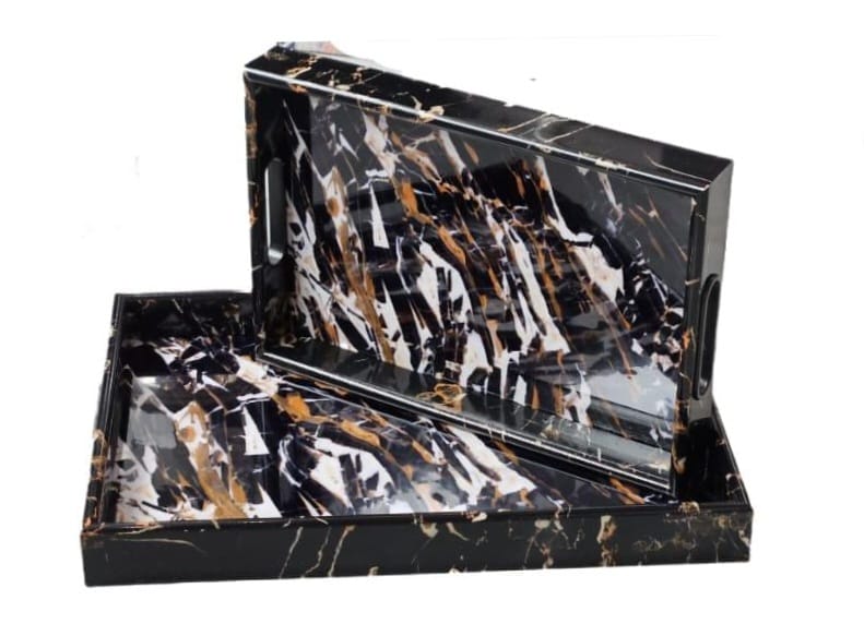 2PC MODERN MARBLE TRAY SET