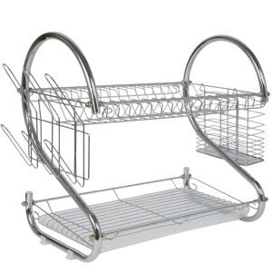 2 LAYER STEEL DISH DRAINER KITCHEN RACK